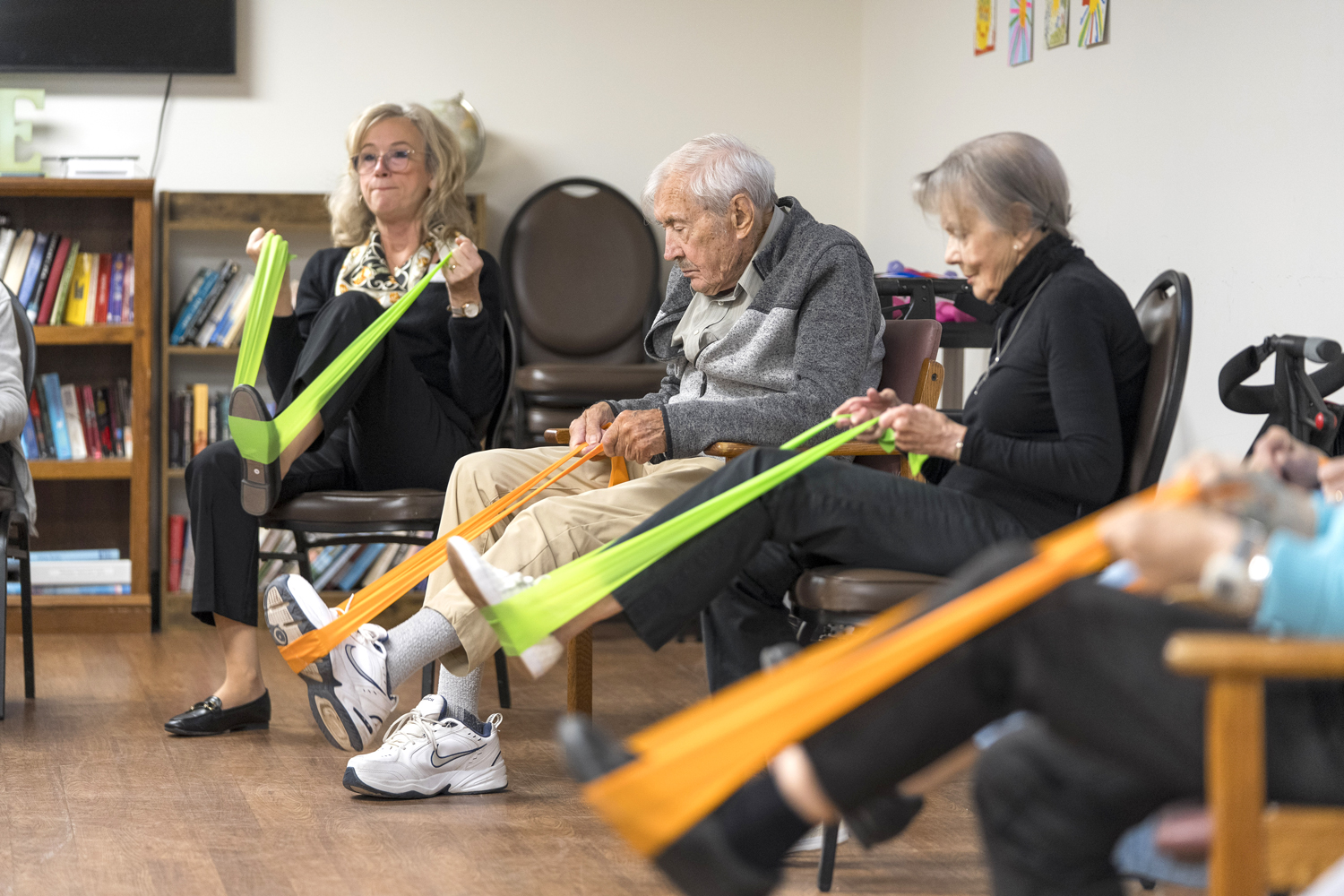 Resident participating in a modified fitness class at Atrium Retirement Residence in Orillia